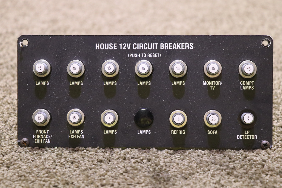 RV/MOTORHOME USED HOUSE CIRCUIT BREAKERS. READY TO SHIP. CONDITION - USED. PRICE $150.00 + $15.99 SHIPPING. CALL VISONE RV (606) 843-9889 TO ORDER OR JUST ADD TO SHOPPING CART FOR EASY CHECKOUT.
